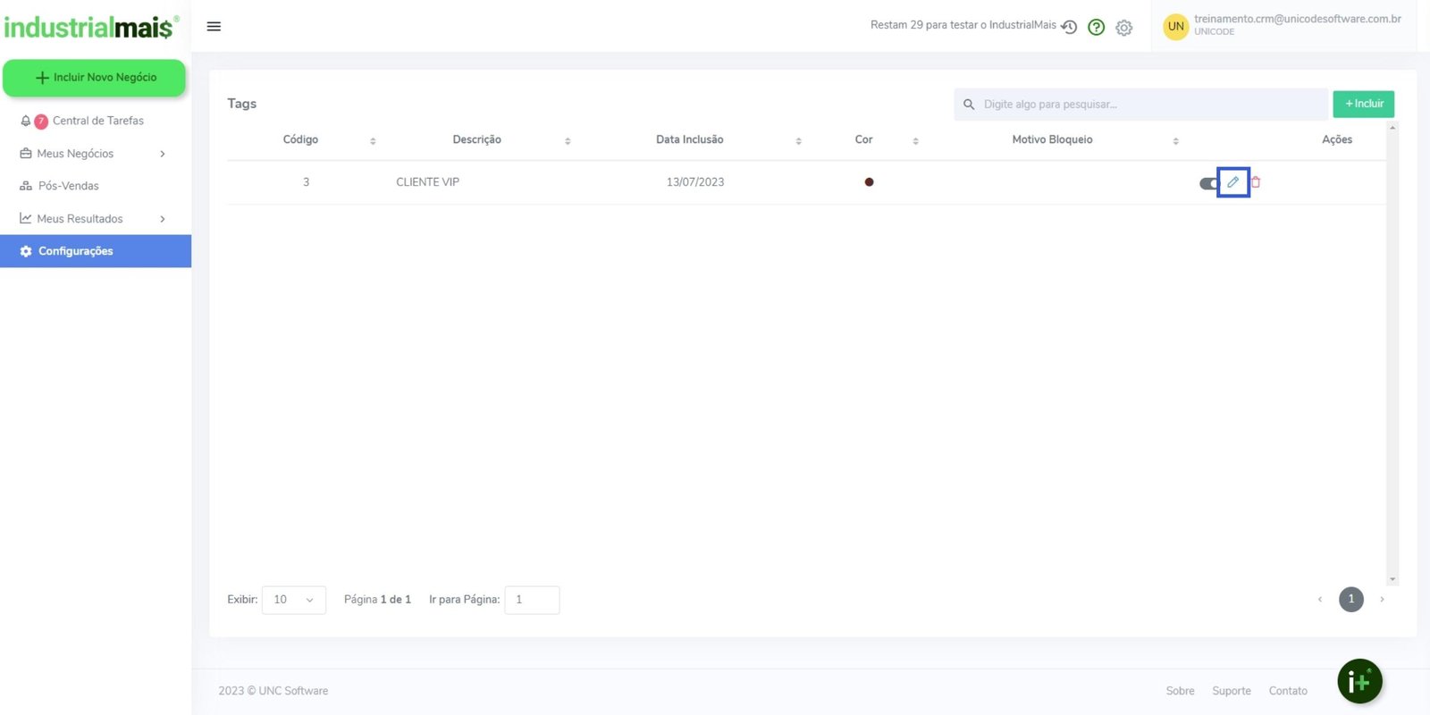 2. Clique sobre o ícone lápis da tag desejado;
