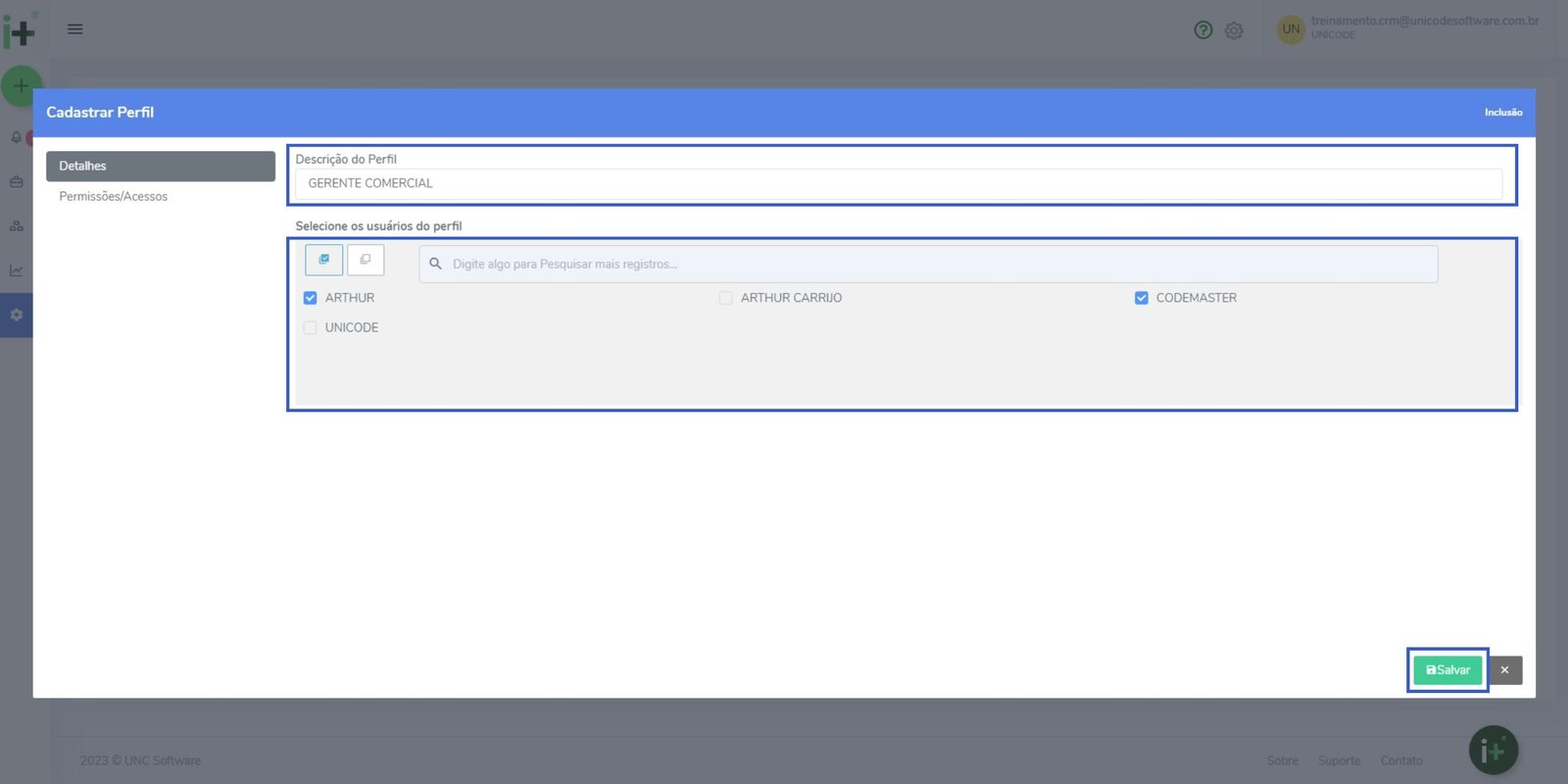 3. Preencha a descrição do perfil e selecione os usuários que se encaixam neste perfil. Para salvar, clique sobre o botão Salvar.