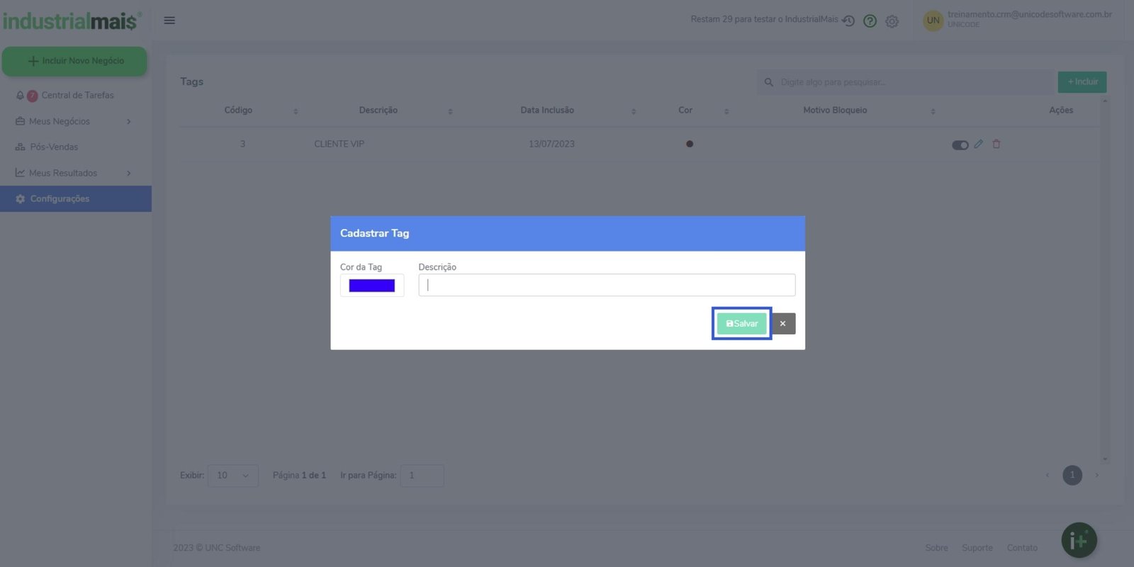3. Selecione a cor desejada para a tag e preencha a descrição. Para salvar, clique sobre o botão Salvar.