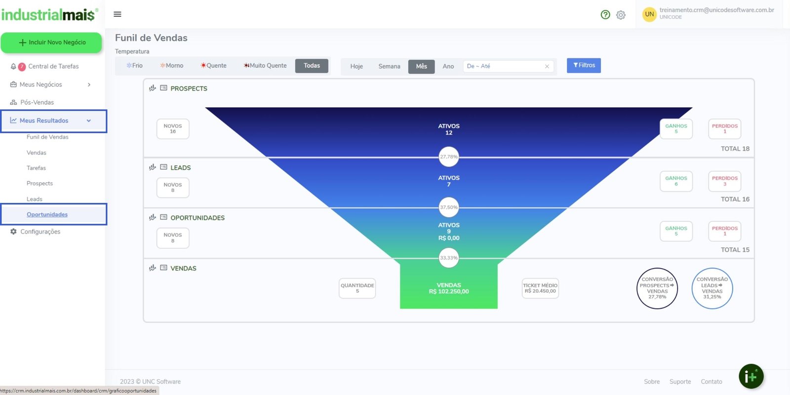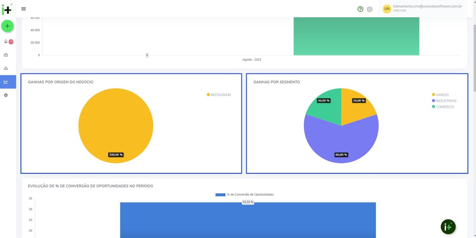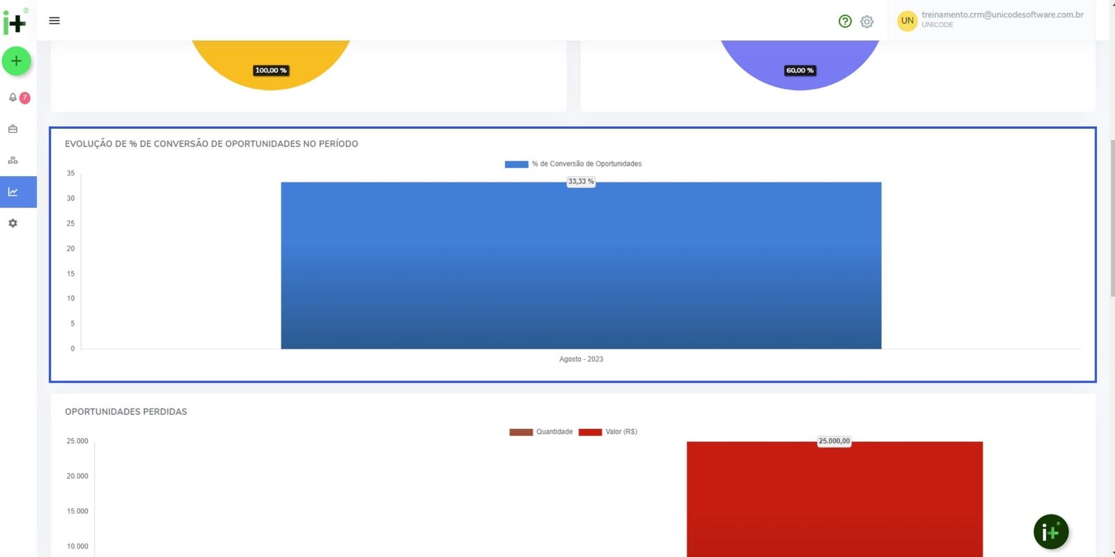 Evolução de porcentagem de conversão de oportunidades no período;