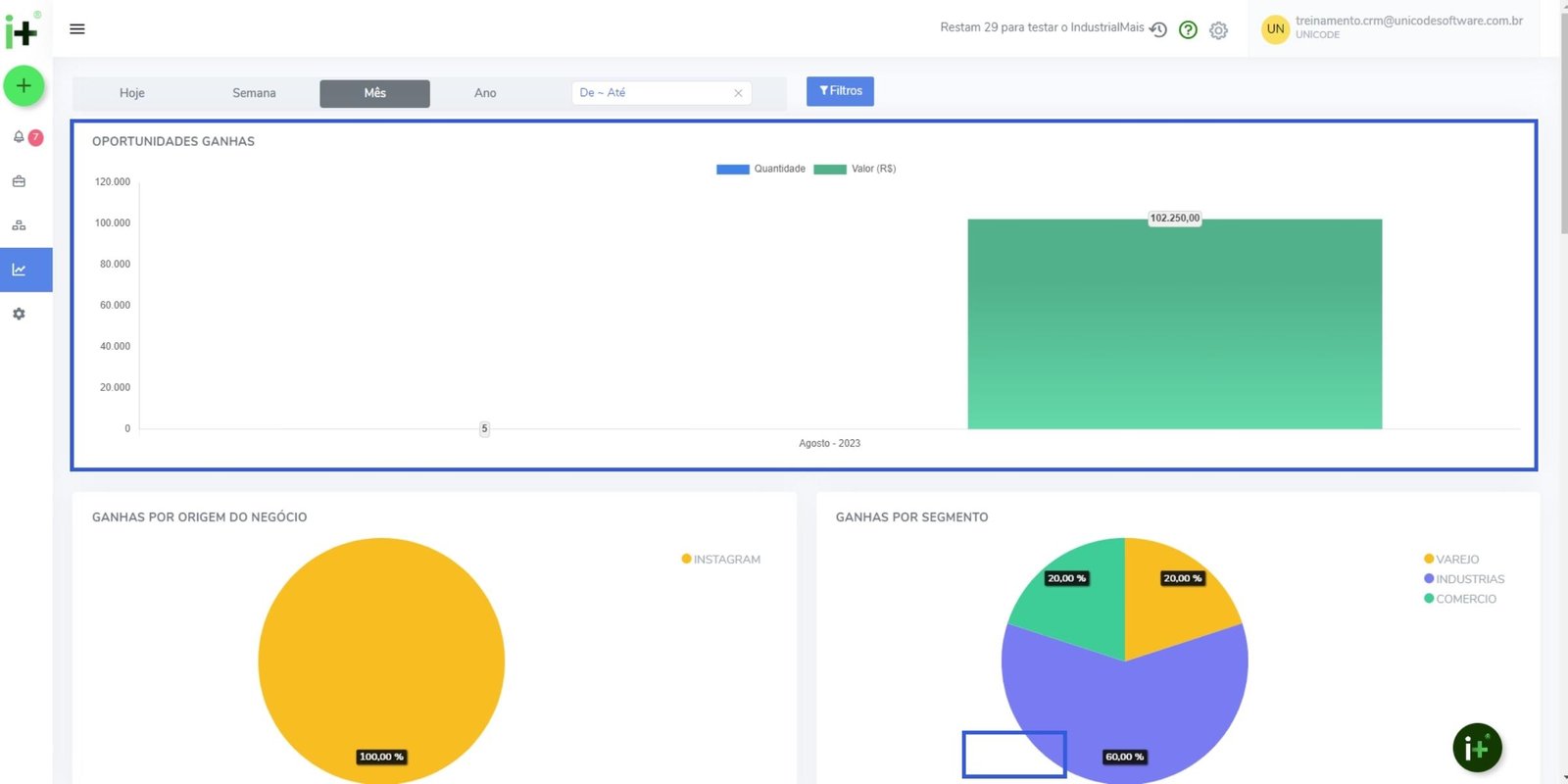 2. Nessa tela serão exibidos alguns gráficos, que indicarão: